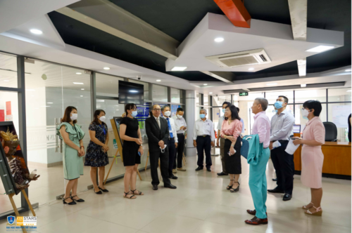 NTTU – Sáng ngày 19/04/2022, đại diện Đoàn chuyên gia đánh giá ngoài (Đoàn ĐGN) của Trung tâm Kiểm định chất lượng giáo dục,Trường đại học Vinh (Trung tâm) gồm GS.TSKH Bành Tiến Long, Nguyên thứ trưởng thường trực Bộ Giáo dục và Đào tạo, Trưởng đoàn và TS. Trần Đình Quang, Thư ký Đoàn kiêm Giám đốc Trung tâm đến thực hiện đợt khảo sát sơ bộ đánh giá chất lượng cơ sở giáo dục tại Trường Đại học Nguyễn Tất Thành (Trường). Trong ngày khảo sát sơ bộ, Trưởng đoàn và Thư ký đã tiến hành thăm quan cơ sở vật chất của Trường tại Quận 12 bao gồm các phòng thực hành, thí nghiệm, thư viện, Siêu thị Coopsmile, các đơn vị như phòng Quan hệ Doanh nghiệp và Việc làm sinh viên, Phòng Công tác sinh viên, Phòng Y tế…, xem phòng phỏng vấn và phòng làm việc dự kiến của Đoàn, xem minh chứng. Sau khi thăm quan cơ sở vất chất, Đoàn ĐGN đã rất ấn tượng với sự đầu tư và phát triển của Nhà trường trong thời gian qua. Đặc biệt, GS.TSKH Bành Tiến Long, Trưởng đoàn từng phê duyệt Đề án thành lập Trường ĐH Nguyễn Tất Thành khi còn là Thứ Trưởng thường trực Bộ Giáo dục và Đào tạo, đã rất ấn tượng với sự phát triển của Trường với nhiều thành tựu đạt được so với Đề án ban đầu.